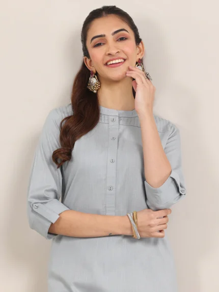 Yellow Woven Design Cotton Blend Straight Short Kurti