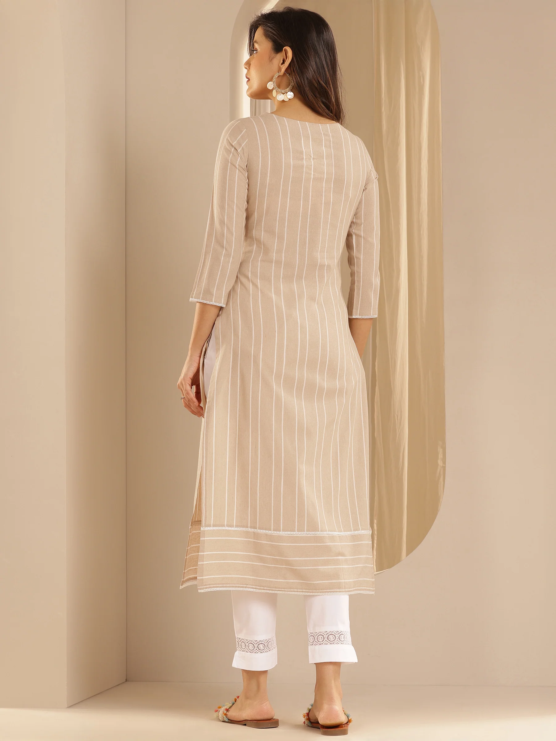Beige Embroidered Cotton Blend Straight Kurta